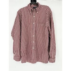 Brooks Brothers Button Shirt Mens Large Non Iron Cotton Gingham Check Red Office