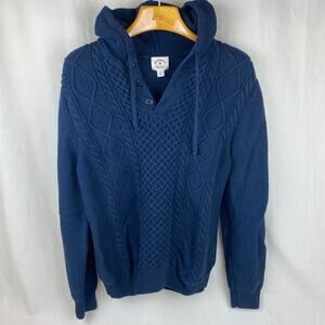 Brooks Brothers Cable Knit Hoodie Sweater Fisherman Nautical Navy Blue XL Men's
