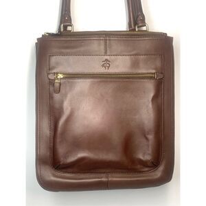 Brooks Brother’s Calfskin Double Zip Cognac Brown Top Handle Large Leather Tote