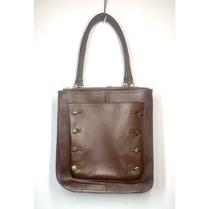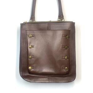 Brooks Brother’s Calfskin Double Zip Cognac Brown Large Leather Tote Buttons