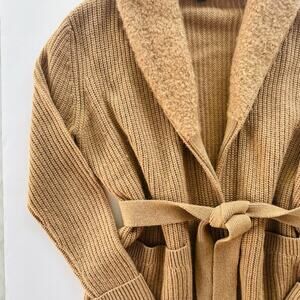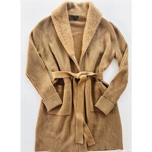 Brooks Brothers Camel Hair Belted Cardigan Size Large Tan Mid-Length Relaxed