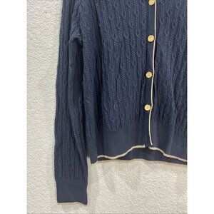 Brooks Brothers Cardigan Sweater Womens XL Navy Cable Knit Gold Button Preppy