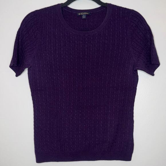 Brooks Brothers Cashmere Women Small Dark Purple Cable Knit Short Sleeve Sweater