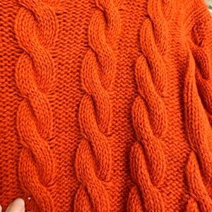 Brooks Brothers Chunky Cable Knit Wool Pullover Sweater Orange Size Medium