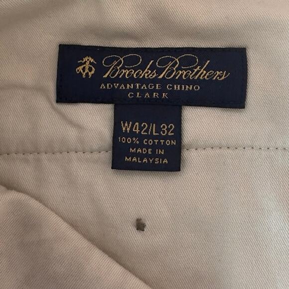 Brooks Brothers Clark Straight-Fit Advantage Chino Pants Size 42x32 Pleated Tan
