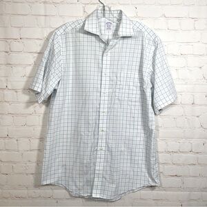 Brooks Brothers Classic Non Iron Shirt Mens Plaid Button Up Short Sleeve 15.5-33