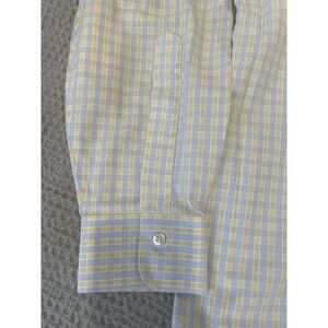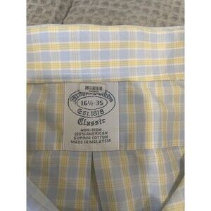 Brooks Brothers Classic Shirt Mens 16.5 35 Blue Yellow Button Up Non Iron