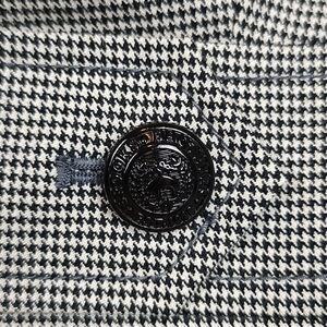 Brooks Brothers Classic Black and White Houndstooth Sleeveless Sheath Dress. This classic sheath dress features 2 front pockets, button detail at the waist, and a hidden zipper with hook-and-eye closure in the back. Fully lined. 59% cotton, 39% rayon and 2% spandex. Size 6.