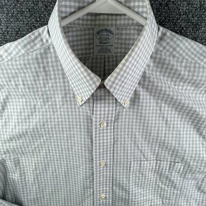 Brooks Brothers Cotton Button Up Shirt Long Sleeve 15.5 36 Classic Gray Check