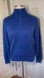 Ribbing at neck, arm cuffs and waist. Blue imo is a little darker than royal blue maybe a lighter navy or indigo blue. Very nice neutral dark shade. Wear this funnel turtleneck collar wrapped high on your neck to keep you warm or open the 1/4 zip collar to lay flat showing two black stripes. Quarter zip logo pullover sweater.