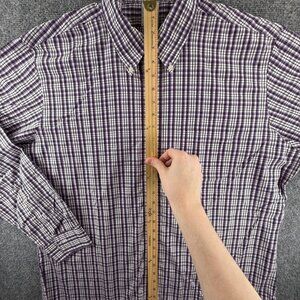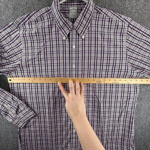 Brooks Brothers Cotton Non-Iron Check Button-Down XL Purple Shirt Pocket Men