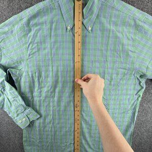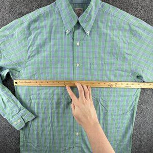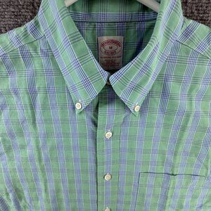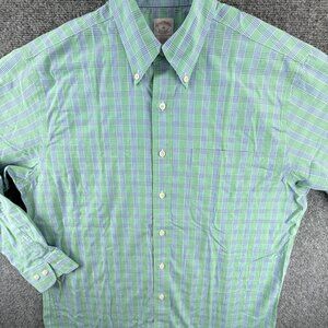 Brooks Brothers Cotton Plaid Non-Iron Medium Button-Down Green Business Pocket