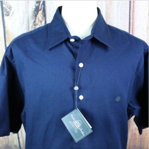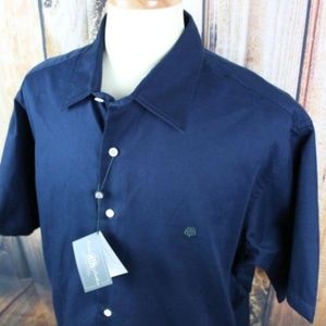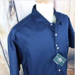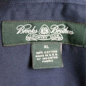 Brooks Brothers Country Club Men’s XL NEW Short Sleeve Button Down Made In USA Solid Navy Blue Embroidered Logo