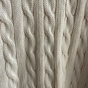 The Brooks Brothers Cream Cable Knit Sweater is a luxurious and classic piece of men's clothing perfect for those with a preppy or old money style. Made from high-quality cotton in a cable-knit fabric, this sweater features a crew neck and long sleeves, making it versatile for all seasons. The ivory color and solid pattern add a touch of sophistication, while the large size and regular fit ensure a comfortable and stylish look. Whether you're walking, golfing, or hiking, this sweater is a timeless choice that exudes a sense of tradition and refinement.