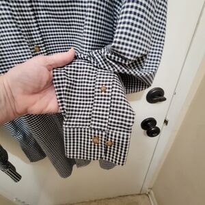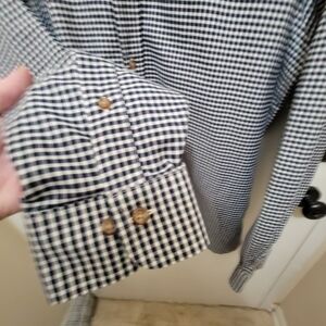 Classic Dark Navy gingham pattern. Perfect for casual outings. Comfortable fit. Long Sleeves. Embroidered Dark Green Logo. Size XL.