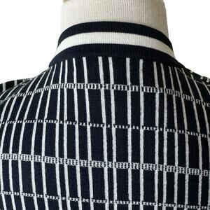 Brooks Brothers Double Jacquard Silk-Blend Cardigan Twin Set Navy Blue White M