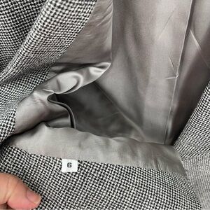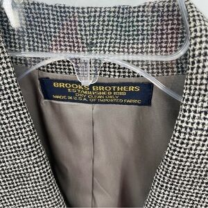 Brooks Brothers Double-breasted Wool 6 Houndstooth Women’s Blazer Black Collared. 100% wool. Lined. Long sleeves. Collar and lapels. Bust 38. Waist 32. Length 25. Measurements are approximate. Shoulder pads. Very good preowned condition.
