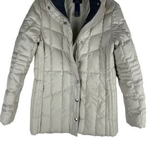 Brooks Brothers Down Puffer Jacket Front Zip Pockets Beige Size 4