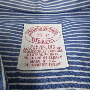 Brooks Brothers Dress Shirt Mens 15 Blue White Striped Formal Collar Button Down.