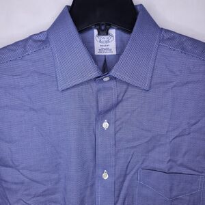 Brooks Brothers Dress Shirt Mens 15.5 Blue Houndstooth Supima Cotton Non Iron