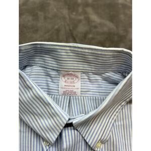 Brooks Brothers Dress Shirt Mens 18 34 Blue Striped Madison Fit Non Iron.