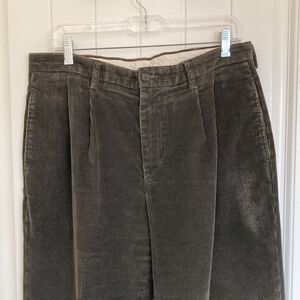 Brooks Brothers Elliot Olive Green Wide Wale Corduroy Pants Pleats Cuff Size 35