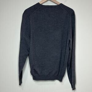 Brooks Brothers Extra Fine Italian Merino Wool Gray V Neck Sweater Size M