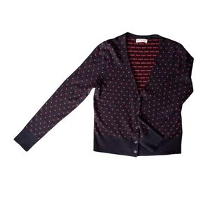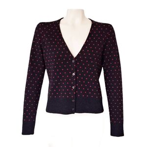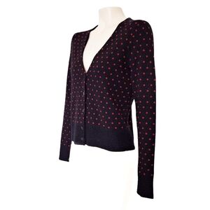 Brooks Brothers Fine Merino Wool Black and Red PolkaDot Cardigan Girlhood Preppy