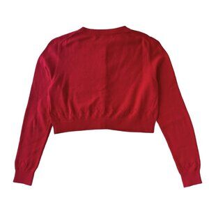 A kids’s red long sleeve cardigan sweater in a size large from Brooks Brothers. Features ribbed hem and cuffs, round neckline, and a button-up closure. 100% Cotton. Measures 13.5 inches in length, 16 inches in width, and the sleeves 20.5 inches in length.