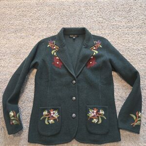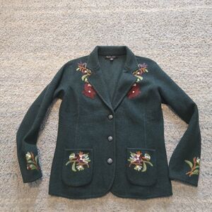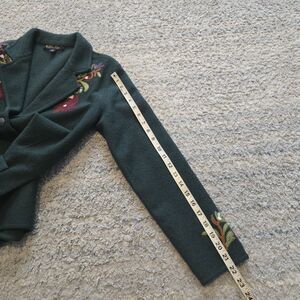 Brooks Brothers Floral-Embroidered Stretch Wool Jacket, Size Medium Green. Very good condition, no holes or stains. Please take good look at all of the pictures for the exact condition and measurements.
