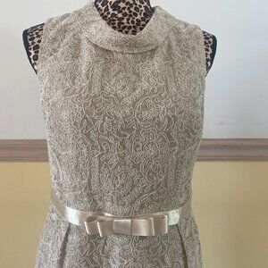 Brooks Brothers Gold Cowl Neck Sleeveless Shimmer Jacquard Dress. Size 4 K12