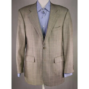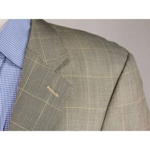 Brooks Brothers Gold/Black Woven Windowpane Wool-Silk 2-Btn Sportcoat Blazer 40R