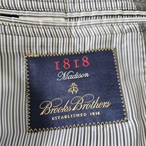 This Brooks Brothers suit jacket in a refined gray pinstripe design offers a timeless and professional look. Crafted with a classic notched lapel, it is perfect for enhancing your business attire. The medium to dark gray hue ensures versatility for various formal occasions.