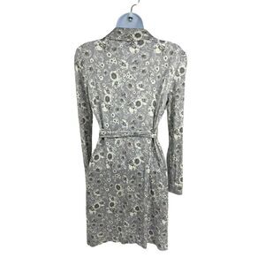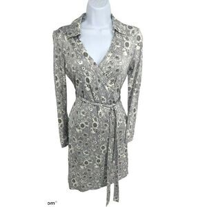 Brooks Brothers Womens wrap dress with collar.Floral pattern on Gray stretchy material .Size 4 US. Has that classic 60's look. Excellent Pre-owned Condition. No rips, holes, or stains, Comes from smoke free environment.