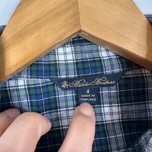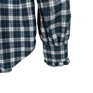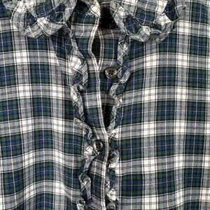 Brooks Brothers Green Plaid Ruffle Button Down Blouse. Excellent condition. Ruffles at end of sleeves, collar, and buttons. Soft lightweight flannel material. X2