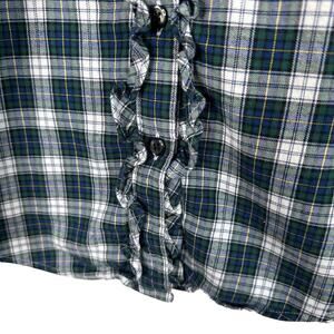 Brooks Brothers Green Plaid Ruffle Button Down Blouse