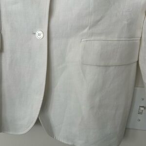 White Irish linen blazer with button front and 1 snap. In VGUC.