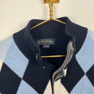 Brooks Brothers Italian Merino Wool Argyle Sweater Blue Button Collar Sz XL