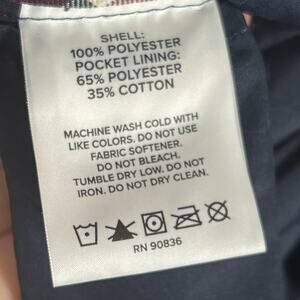 Shell: 100% polyester for lightweight warmth. Pocket lining: 65% polyester, 35% cotton.