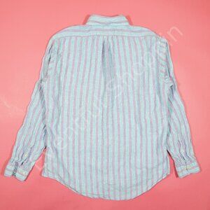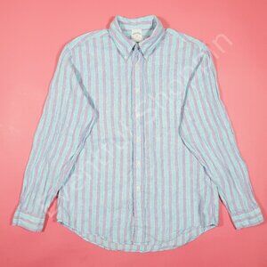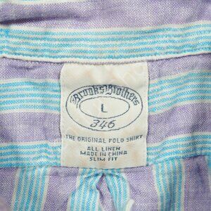 Brooks Brothers Linen Shirt Mens L Blue Purple Striped Long Sleeve