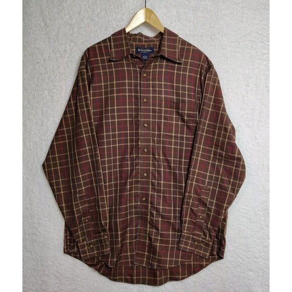 Brooks Brothers Long Sleeve Button Shirt Men's L Plaid Non-Iron Brown