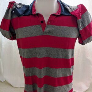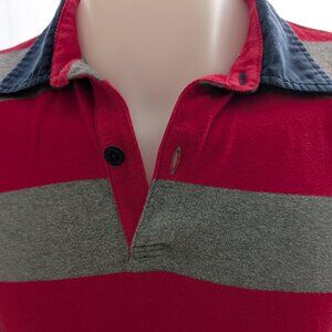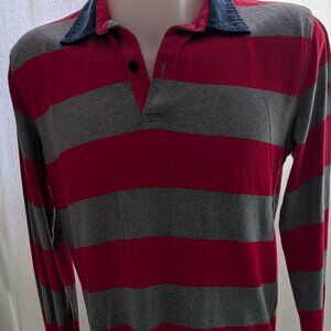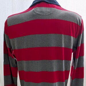 Brooks Brothers Long Sleeve Polo Gray Red Stripe L - “Established 1818” Sleeve