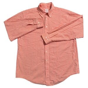 Brooks Brothers Madison Button Down Shirt Men's Large Orange White Seersucker