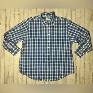 Brooks Brothers Madison Fit Stretch Button Down Shirt Mens XL Plaid Blue