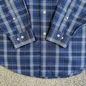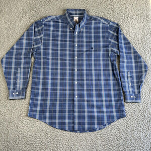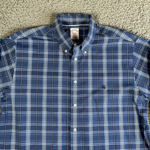 Brooks Brothers Madison Shirt Mens Large Blue Plaid Button Up Logo Preppy