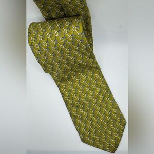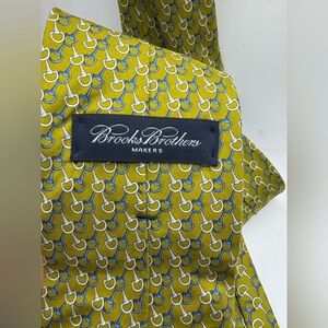 Brooks Brothers Makers 100% Silk Neck Tie Blue Geometric on Green 60"x4"EUC