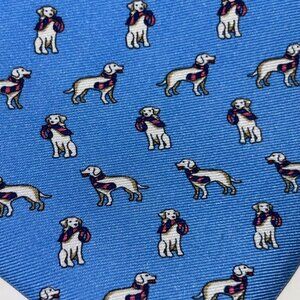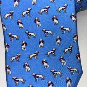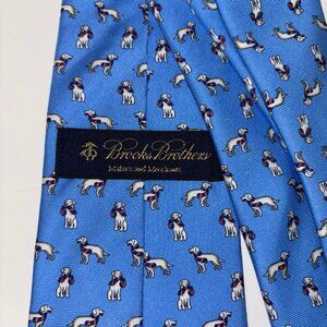 Brooks Brothers Makers 100% Silk Tie Dog Print Blue Necktie