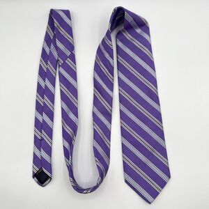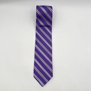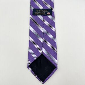 Brooks Brothers Makers Mens 100% Silk Repp Tie Purple WhiteRegimental Stripe 60"