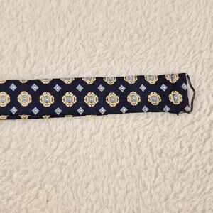 Brooks Brothers Makers Mens Silk Bow Tie Navy Blue Yellow Geometric Pattern