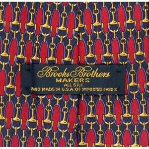 Elevate your style with this stunning Brooks Brothers Makers red tie featuring a bold geometric pattern. Perfect for any fashion-forward man, this 100% silk tie is handmade and vintage, adding a touch of timeless elegance to any outfit. The classic width and short length make it versatile for any occasion, whether it's a formal event or a casual day at the office. The tie has a tied attachment type and is sure to make a statement with its vibrant red color and accents of blue and orange.